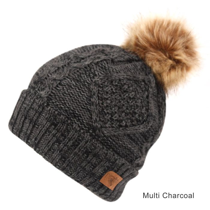 solid & multi color knit beanie with pom pom and warm fleece lining