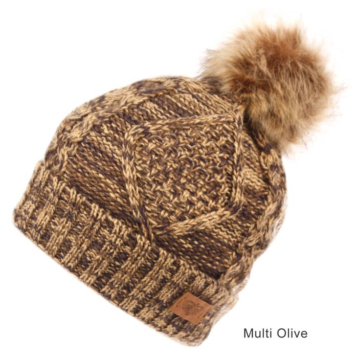 6 Bulk Solid & Multi Color Knit Beanie Hat With Pom Pom Multi Olive