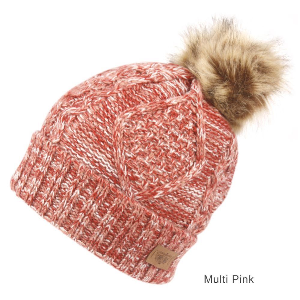 6 Bulk Solid & Multi Color Knit Beanie Hat With Pom Pom Multi Pink