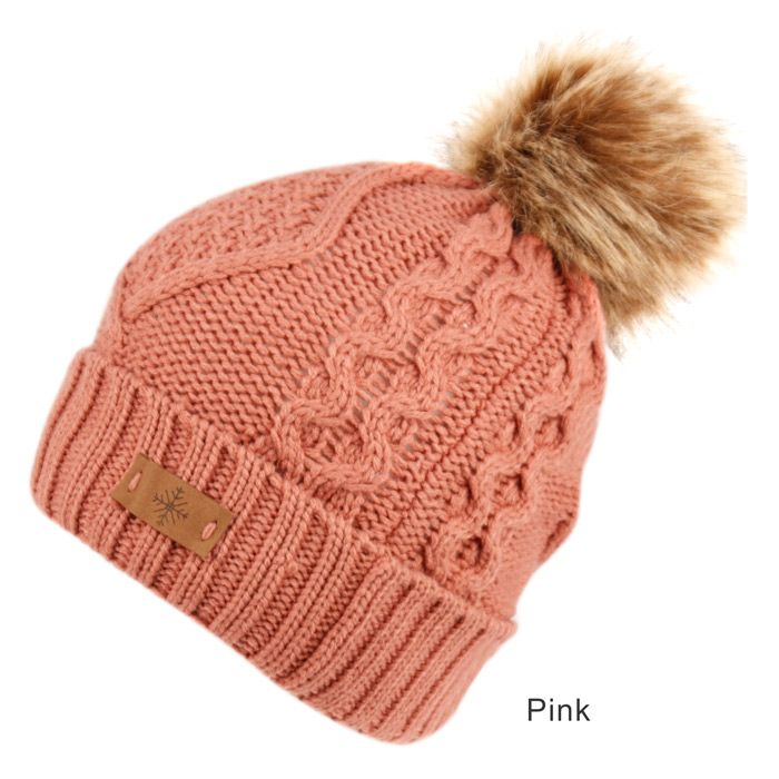 6 Bulk Solid & Multi Color Knit Beanie Hat With Pom Pom Pink