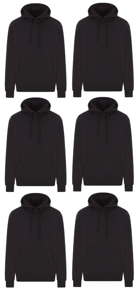 6 Bulk Unisex Cotton Hoodie Sweatshirt In Black Size Xlarge