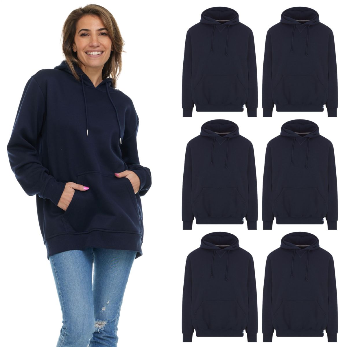 6 Bulk Women's Cotton Oversized Hoodie Sweat Shirt Navy Size Large