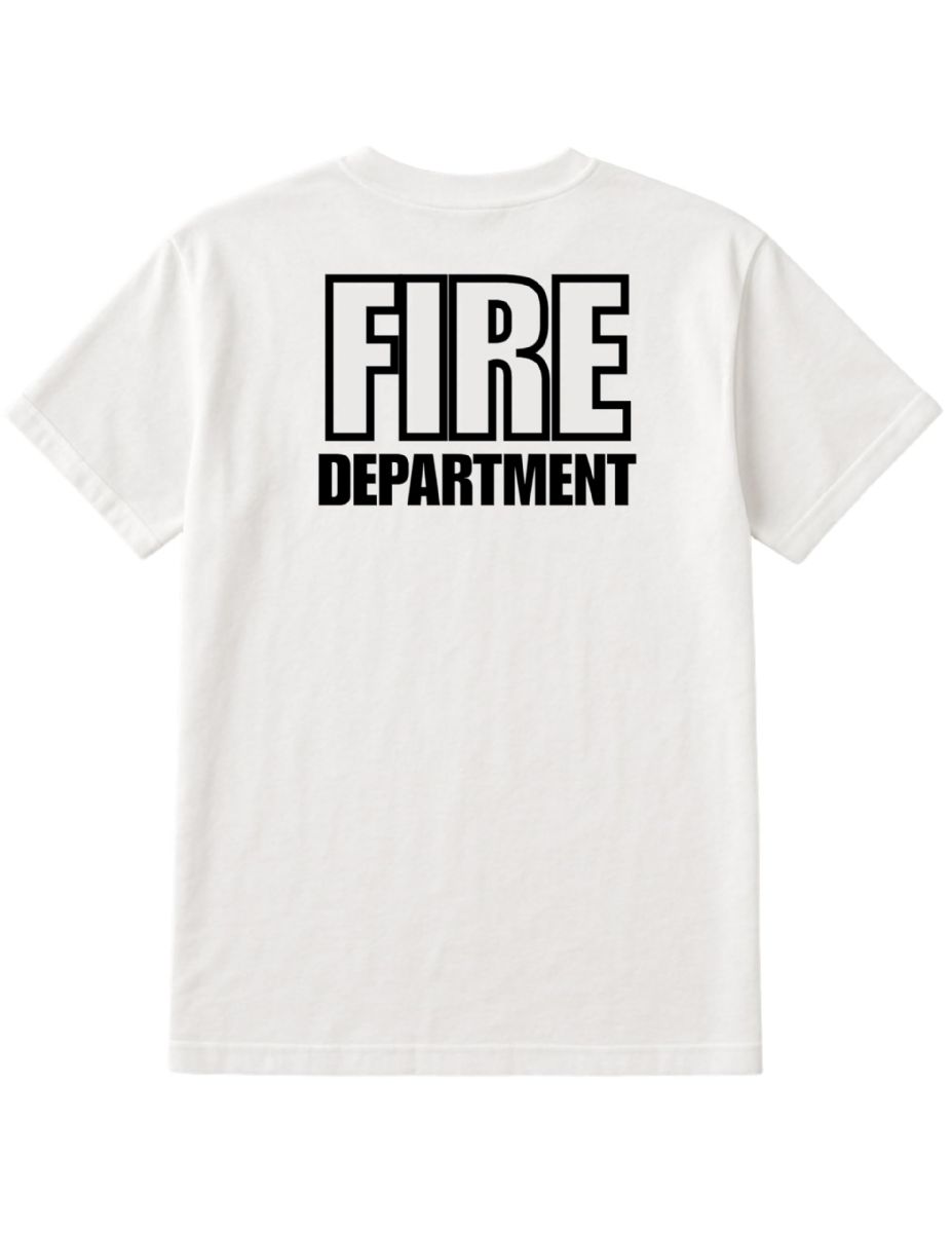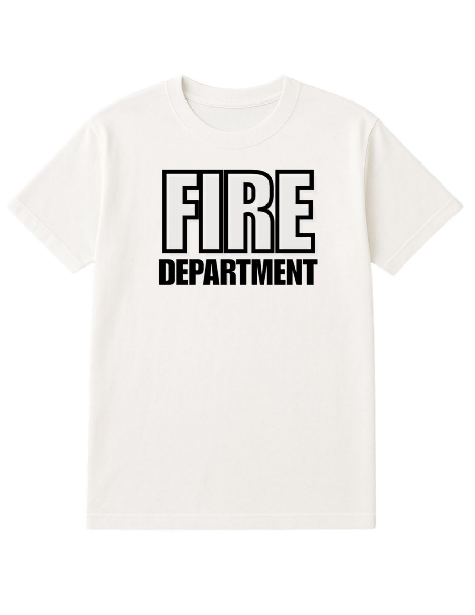 Features: Printed in the USA; bold "FIRE DEPT." graphic; reinforced neck seam.