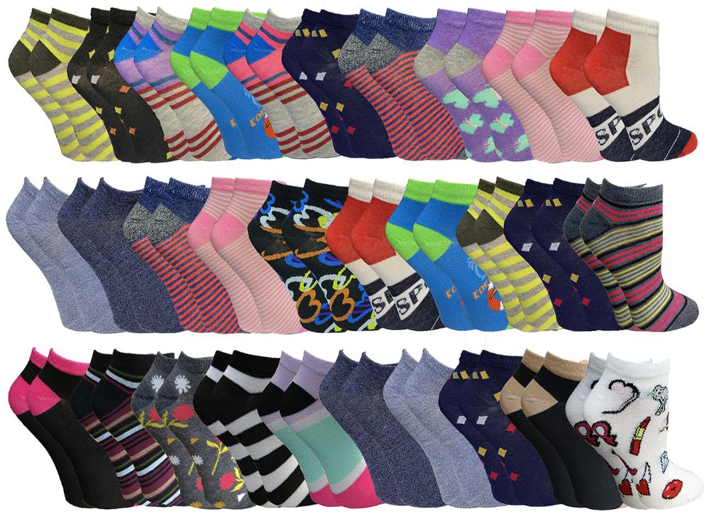 360 Bulk Yacht & Smith Women's Assorted Colored Prints No Show Ankle Socks Size 9-11