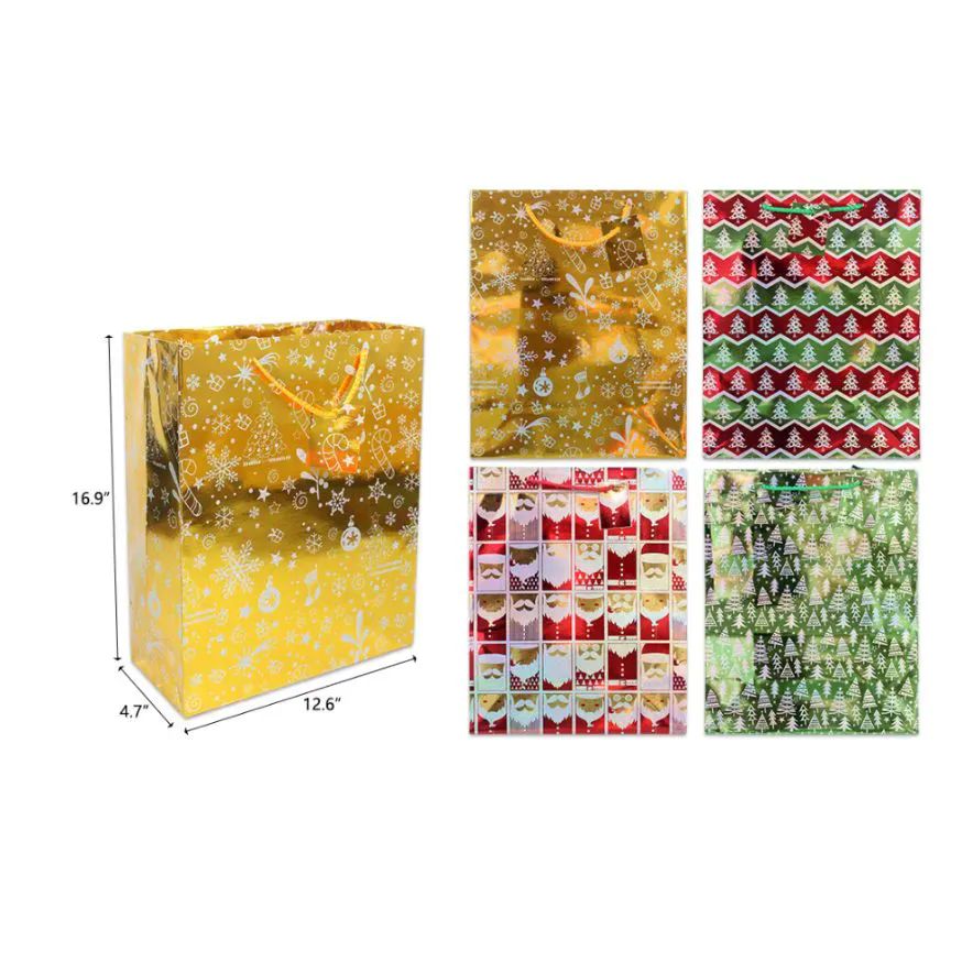 Get ready for the holiday season with our spacious Christmas Gift Bags. These large bags measure 12.6 x 16.9 x 4.7 inches, providing ample room for your gifts. Perfect for wrapping presents of all shapes and sizes.