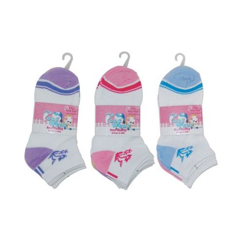 Keep your little one?s feet cozy and stylish with this 3 pack of girls' ankle socks, crafted from high quality fabric for a soft and comfortable fit, featuring assorted colors that add fun variety to daily outfits, with a durable build and hook for easy retail display or storage.
