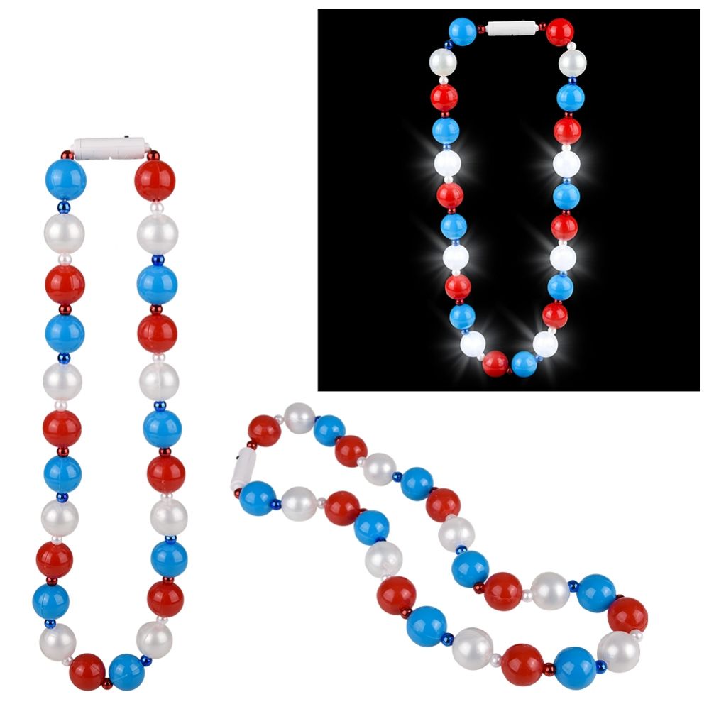 Show your spirit with this red, white, and blue light-up necklace