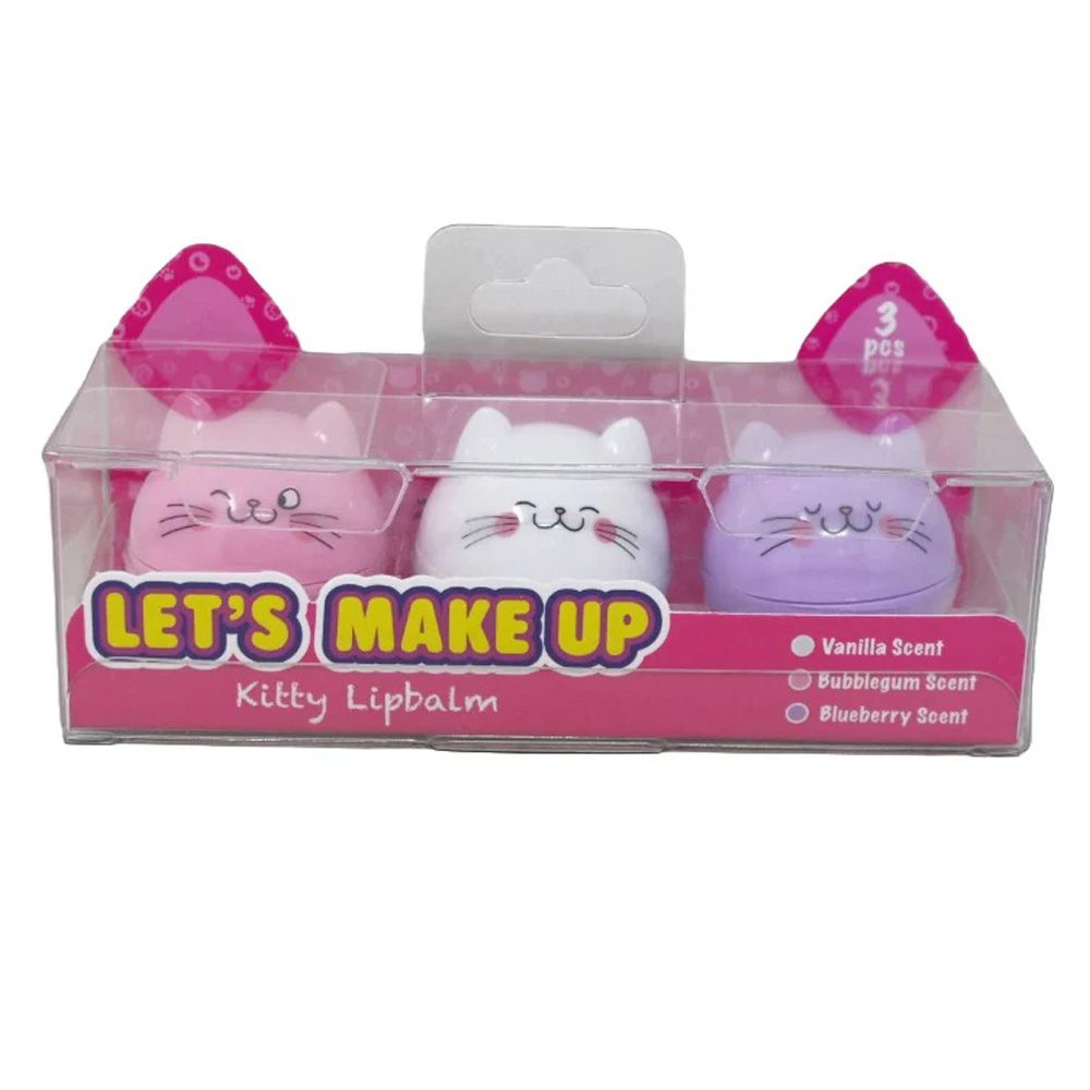Treat your lips to a burst of moisture and fun with this 3pc Kitty Lip Balm set, featuring a charming design that is perfect for all ages. Each set is crafted using high quality materials to ensure a smooth, nourishing application that keeps lips hydrated and soft throughout the day. This delightful collection includes three delicious fragrances: soothing Vanilla, classic Bubblegum, and refreshing Blueberry, providing a variety of scents to suit any mood. The lip balms come in three assorted colors, each boasting a stylish kitty-themed container that adds a playful touch to your beauty routine. Neatly packed for a professional and clean presentation, this set is ideal for gifting, party favors, or as a vibrant addition to a retail beauty display. The compact and portable design makes them easy to carry in a pocket, purse, or school bag for everyday use. Whether you are looking for a practical everyday essential or a stylish accessory, this high-quality lip balm set combines effective lip care with a cute, eye-catching aesthetic that stands out on any vanity or store shelf.