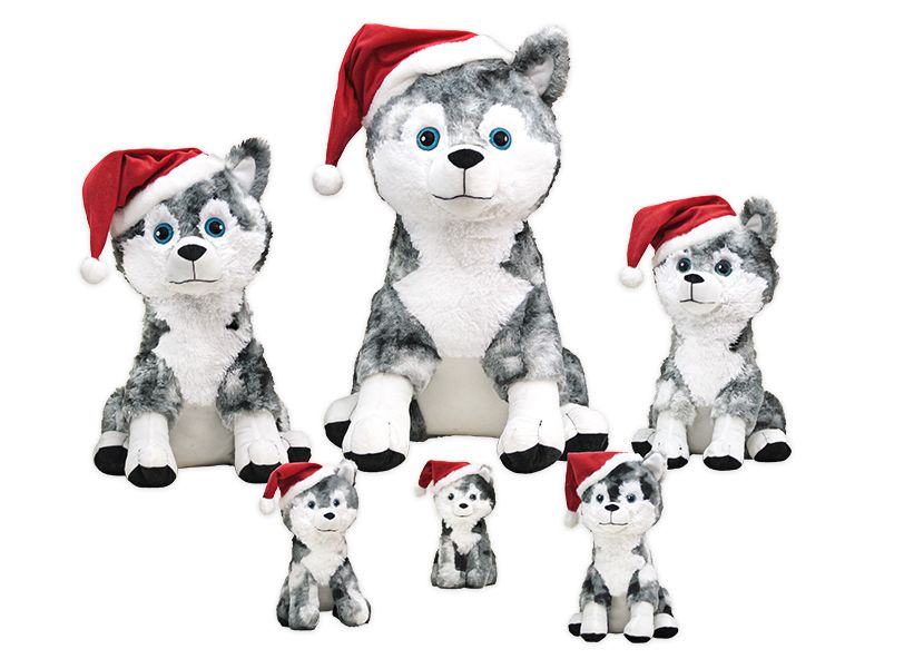 Celebrate the holidays with the adorable 9-15 inch Christmas Anchor Husky Plush Toy. This medium stuffed animal features the popular Husky dog, Anchor, dressed in festive holiday attire or accessories (Santa hat, scarf, etc.,). Perfect for seasonal retail, holiday gifts, or decorations.
