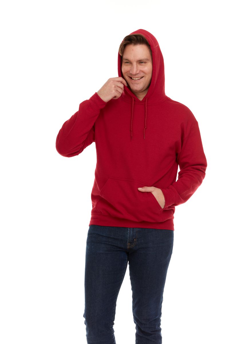 Fabric 271 g/m² preshrunk fleece knit. Includes air jet yarns for a softer feel and reduced piling. Double-lines hood with color matched, draw cord.