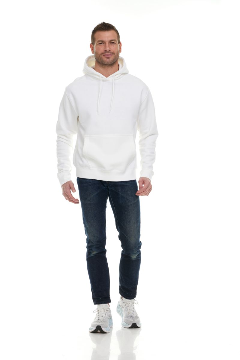 Fabric 271 g/m² preshrunk fleece knit. Includes air jet yarns for a softer feel and reduced piling. Double-lines hood with color matched, draw cord.