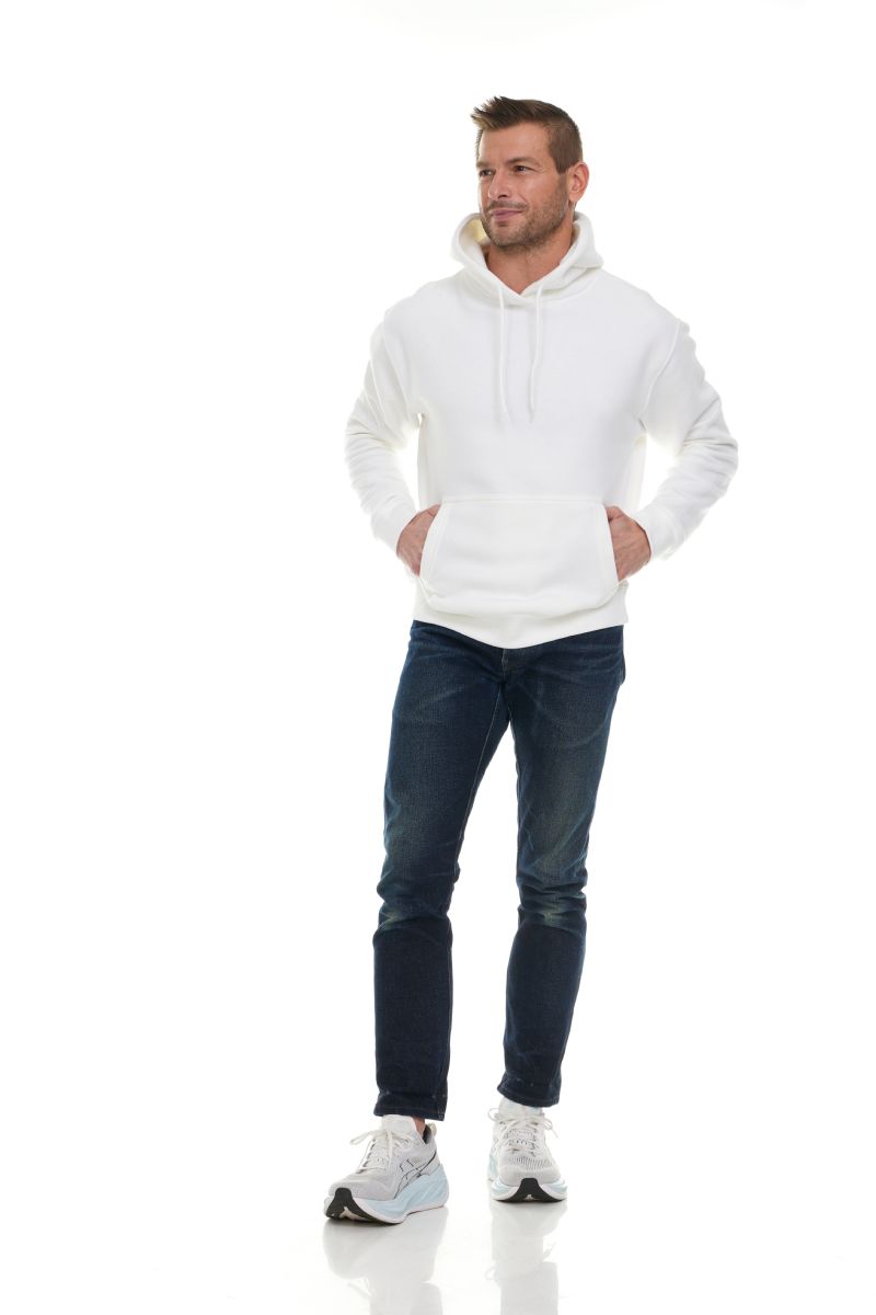 Fabric 271 g/m² preshrunk fleece knit. Includes air jet yarns for a softer feel and reduced piling. Double-lines hood with color matched, draw cord.
