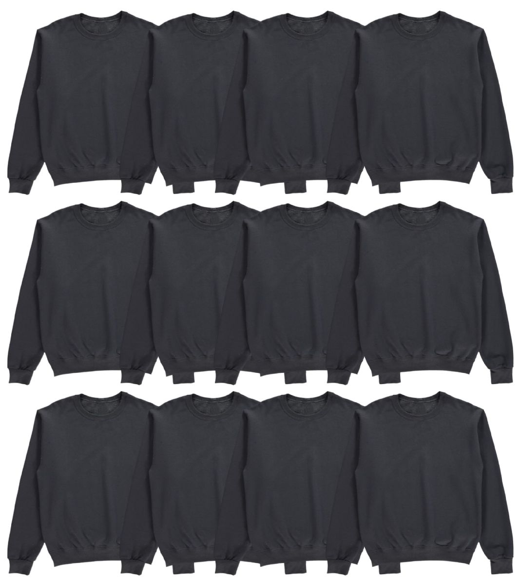 72 Bulk Unisex Fleece Line Cotton Crew Neck Sweat Shirt Black Size 2xl