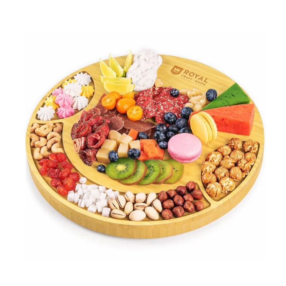 Add a touch of sophistication to your next gathering with this 13.5" Round Bamboo Cheese Board. Crafted to perfection from high quality bamboo, this board is both durable and stylish, featuring a beautiful natural bamboo color that enhances any presentation. The circular design is perfect for charcuterie boards and for serving various types of food, providing an elegant backdrop for your favorite snacks and appetizers. This set comes complete with a 3-piece cutlery set, ensuring you have the right tools for slicing and serving. Its sleek and elegant aesthetic makes it a standout piece for any host. For added convenience and protection, each set is individually boxed, making it a perfect choice for retail or as a thoughtful gift.