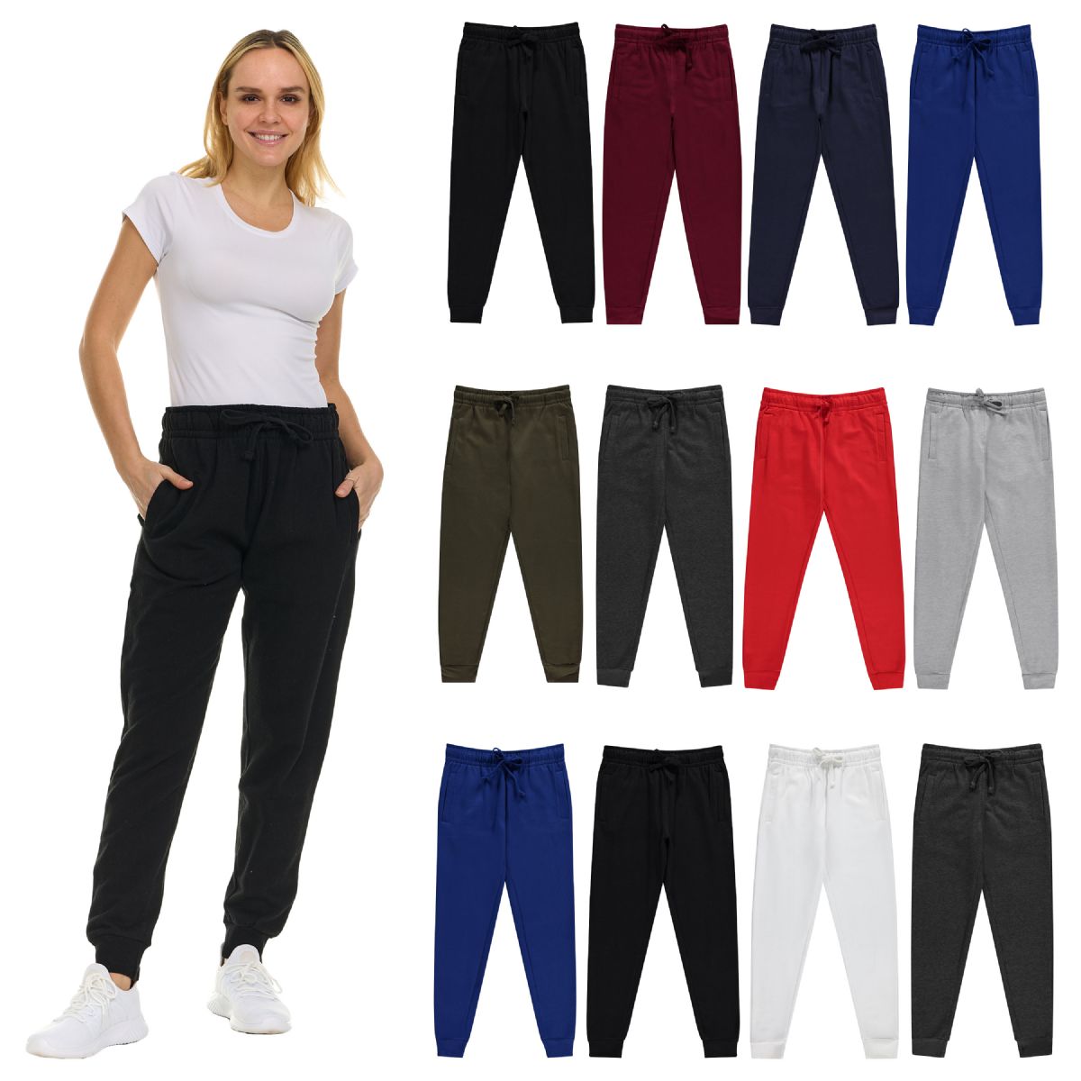 48 Bulk Womens Fleece Lined Jogger With Pocket In Assorted Size 3X-Large